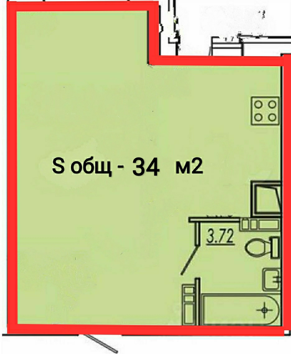 Общая площадь 34 м2