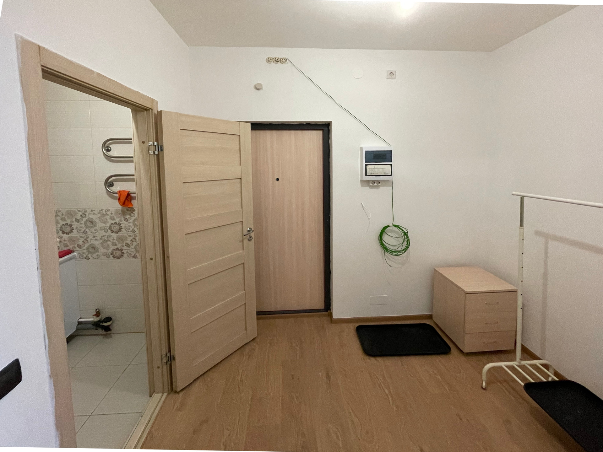 Квартира сдавалась с чистовой отделкой от застройщика, недавно ремонт освежили - покрасили стены, переклеили обои, в санузле заменили потолок. Удобная планировка - в прихожей можно сделать гардеробную, довольно большой санузел, большая широкая лоджия.