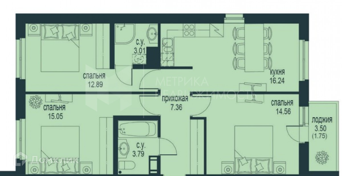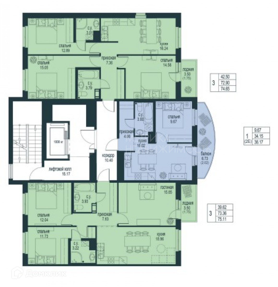 Общая площадь 74.65 м2
