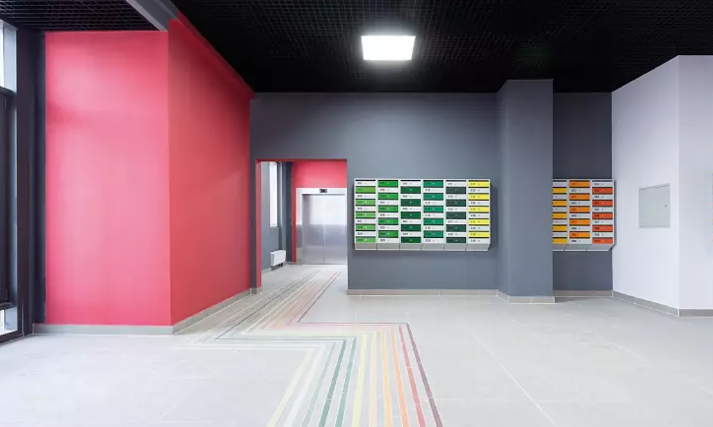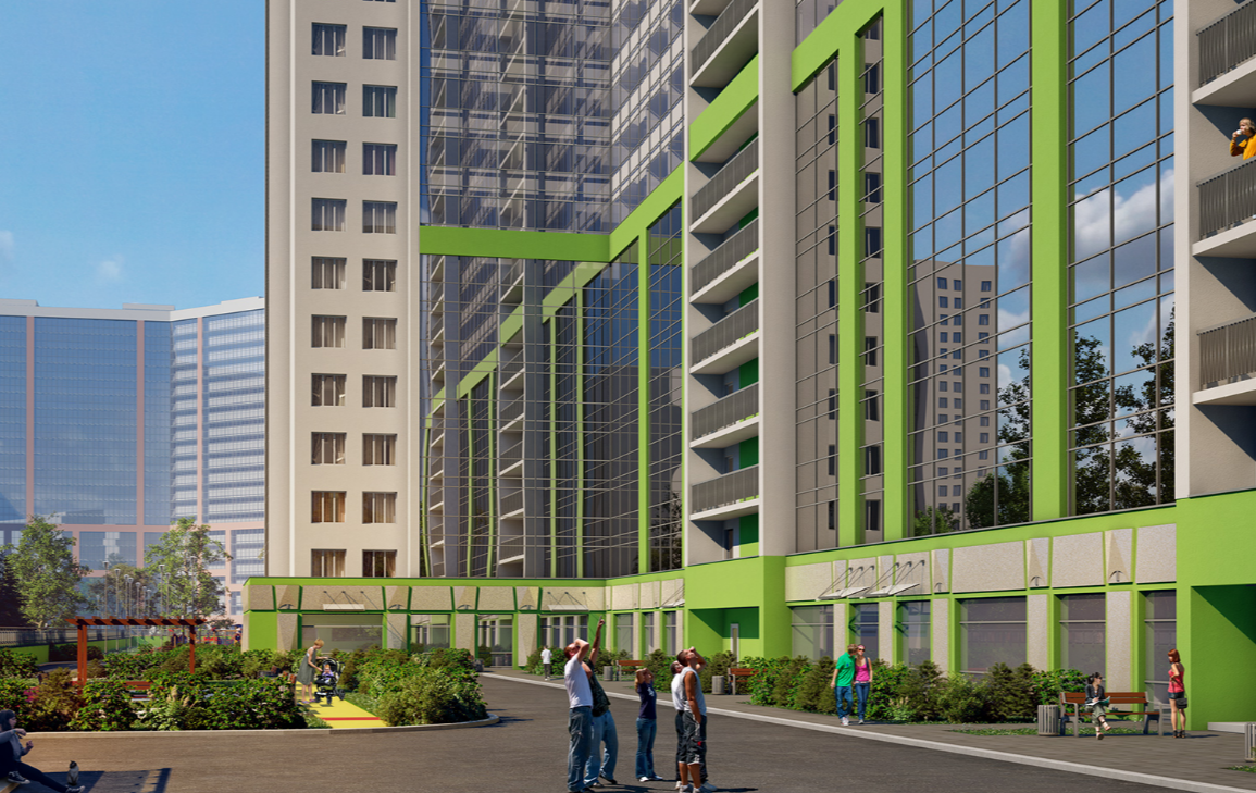Холлы и все общие зоны в зданиях украшает дизайнерская отделка. В доме часть помещений на первых двух этажах определена под коммерцию (кафе, салоны). Кроме того, удобство проживания обеспечат кладовые на цокольном этаже и помещения для колясочных.