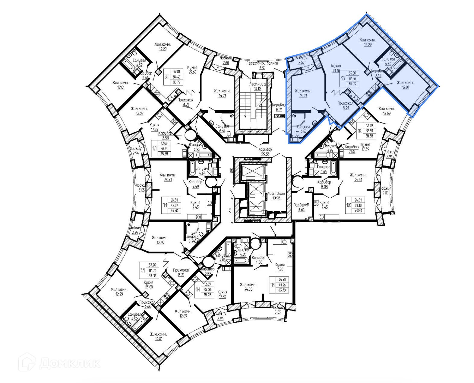 Общая площадь 84.5 м2