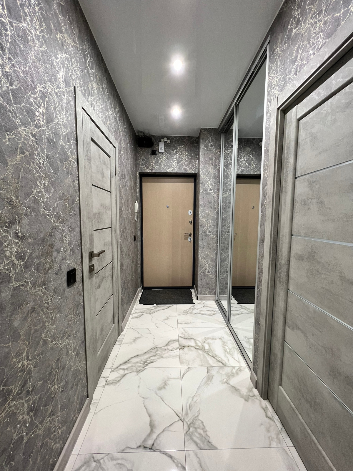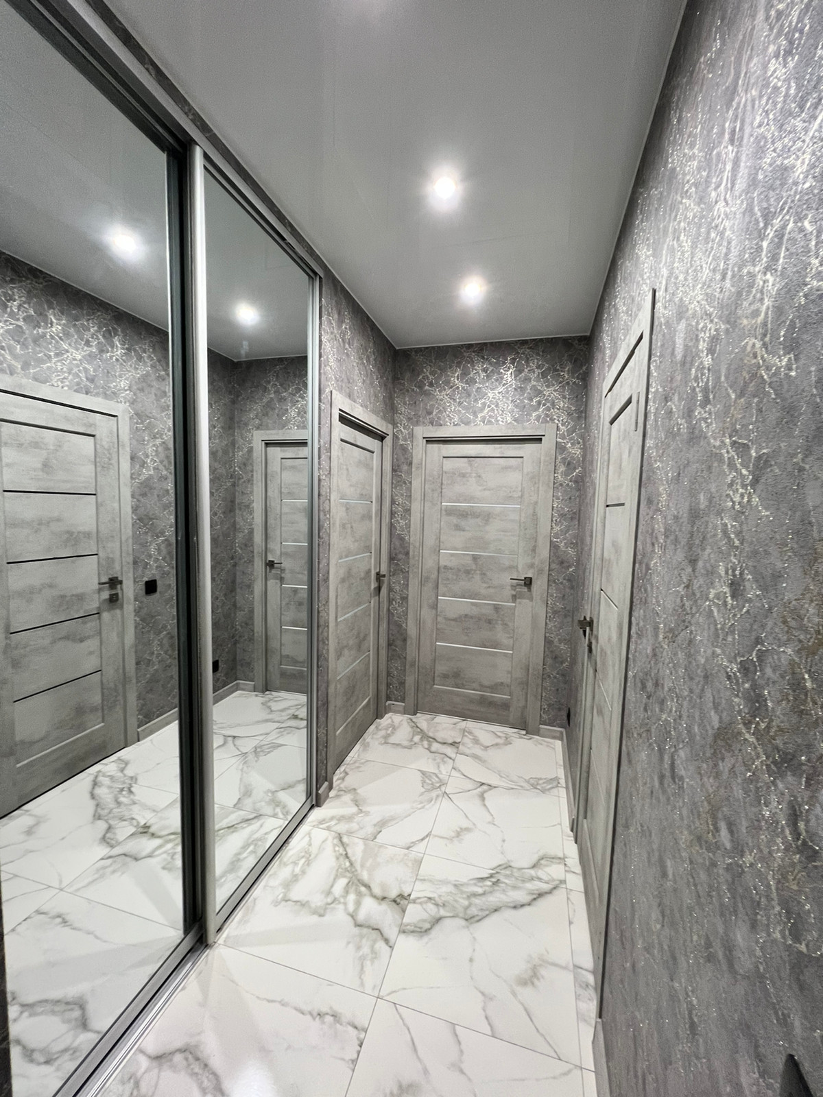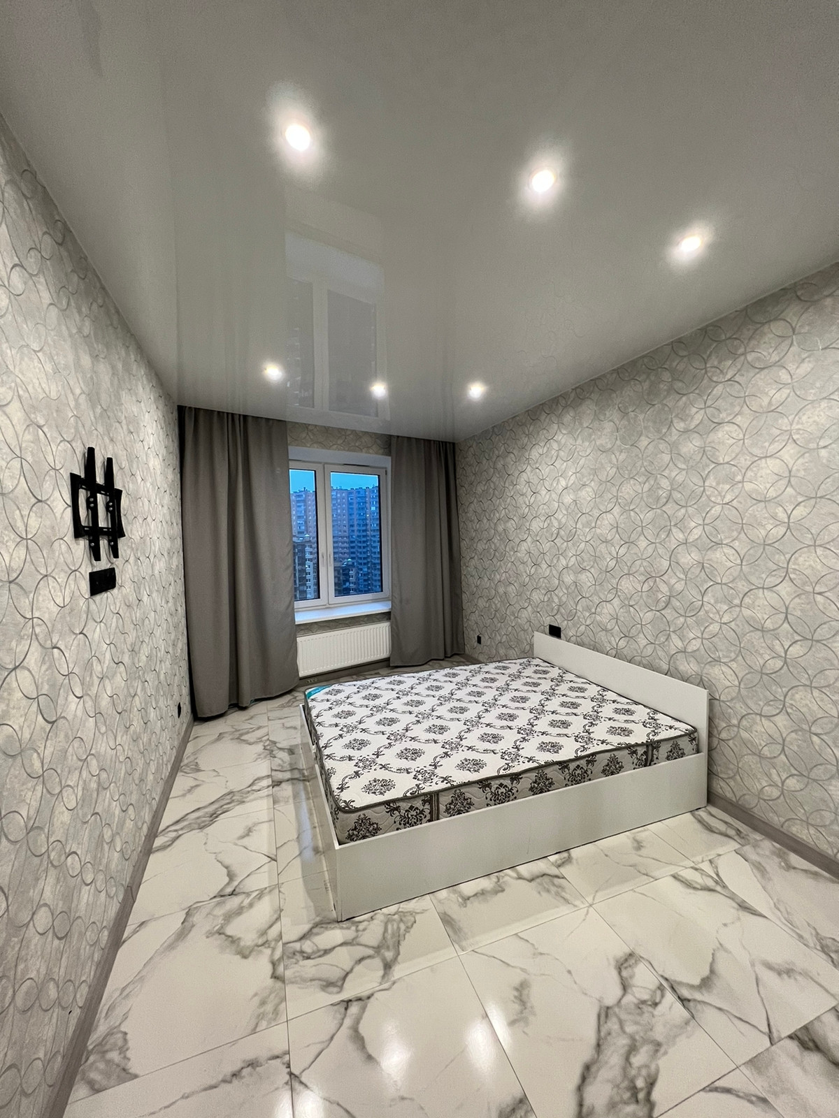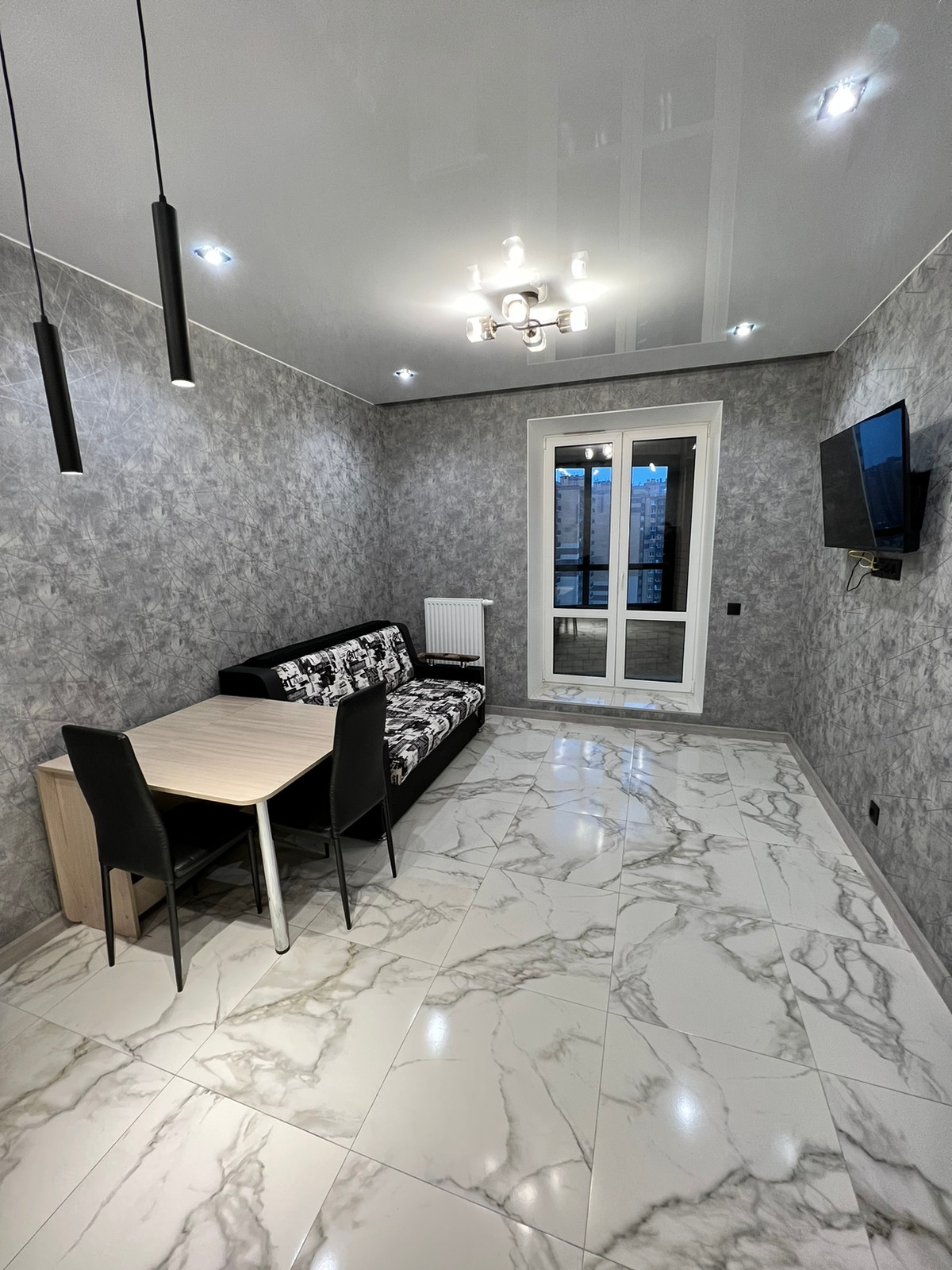 - везде натяжные потолки с зонированием освещения;
