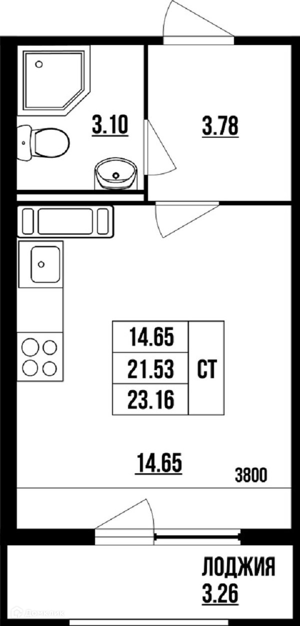 Общая площадь 23.16 м2