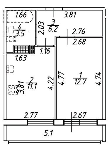 Балкон, лоджия 1 балкон