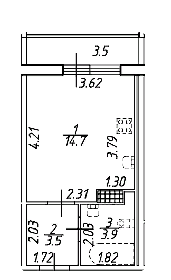 Площадь кухни 4.7 м2