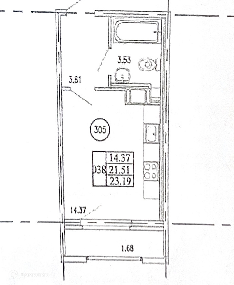 Общая площадь 22.3 м2
