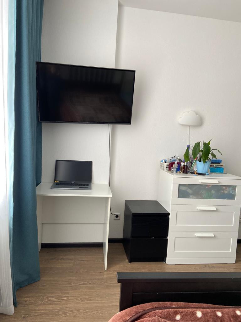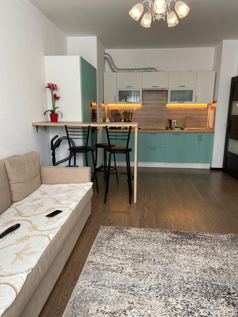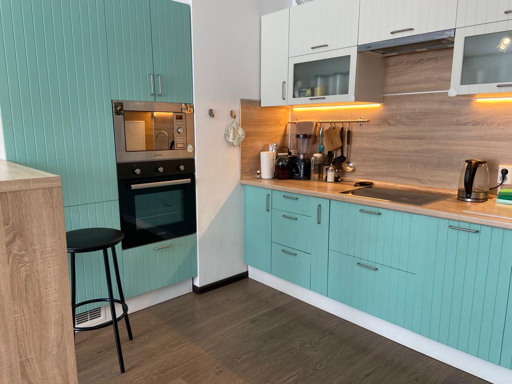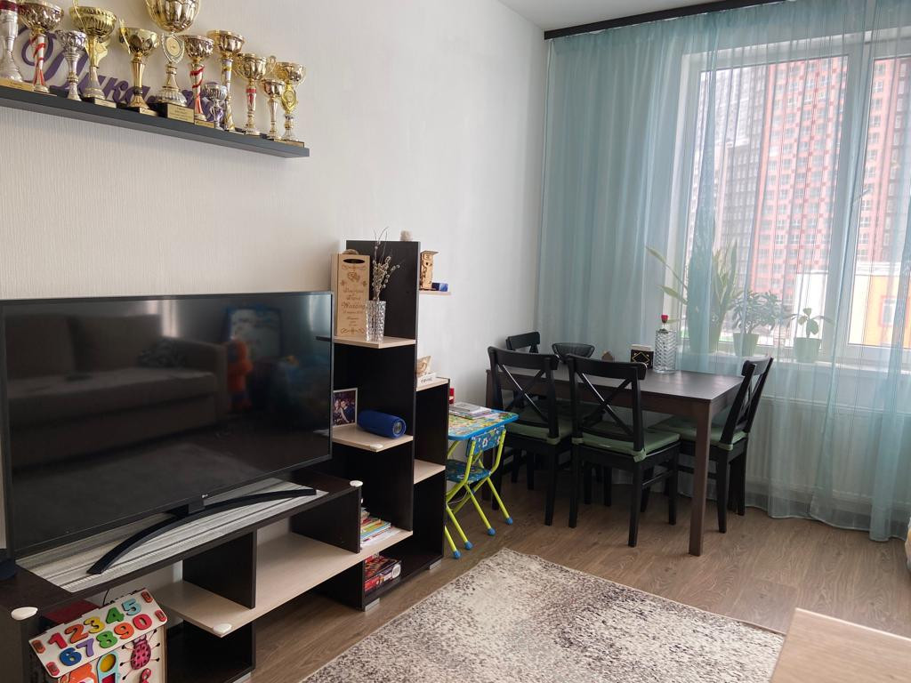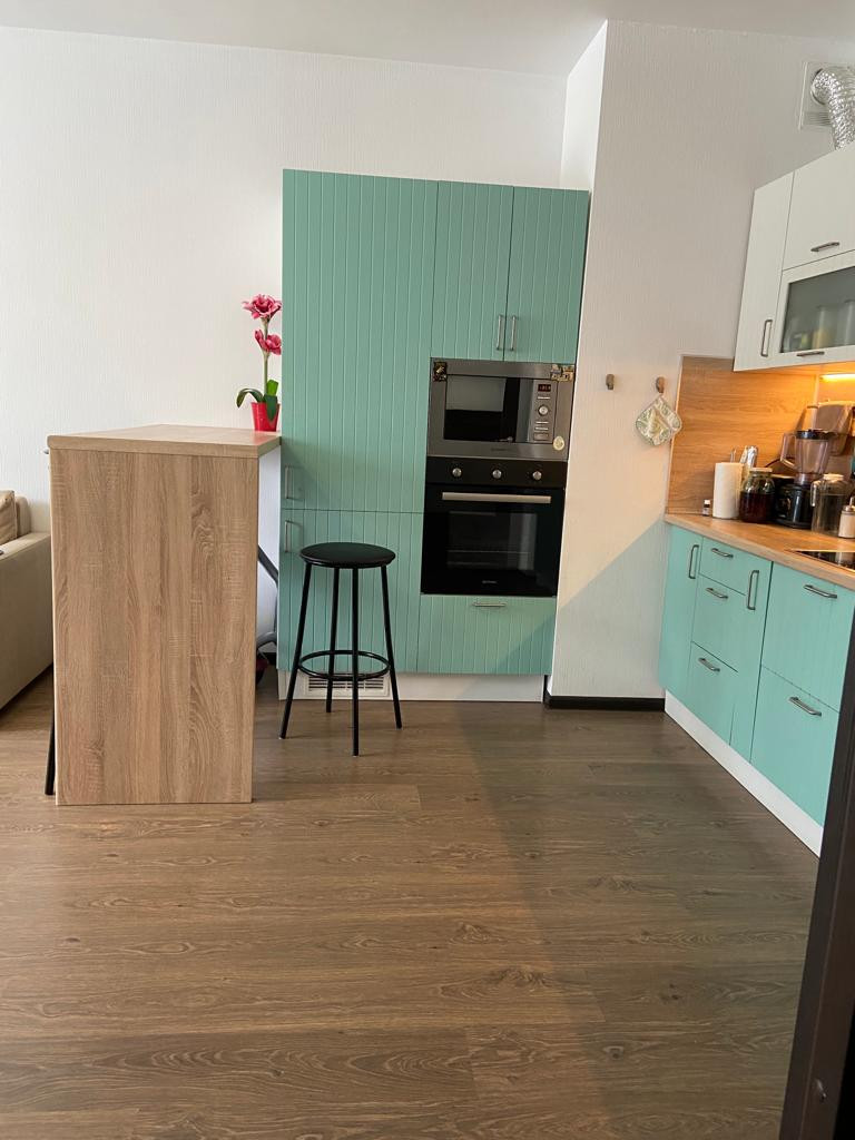 Евродвушка. Продаю просторную, уютную квартиру с евро отделкой в новом доме. Дом построен по типу безбарьерной среды, на коляске можно заехать сразу в лифт. Квартира в идеальном состоянии. Остается встроенная кухня, стенка в гостиной, барная стойка со стульями и бытовая техника включая посудомоечную машину, духовой шкаф, электрическую варочную поверхность, холодильник. Большая кухня гостиная 22.3 м2. Спальня 13.9 м2 с выходом на застекленную лоджию. Лоджиа 6 кв.м., панорамное остекление, поместиться диванчик и стол со стульями для утреннего кофе. Раздельный санузел с полноценной ванной, красивая качественная кафельная плитка до потолка. В доме пассажирский и грузовой лифт, чистая парадная с видеонаблюдением, закрытый двор, с детской площадкой. Кофейня, продуктовый магазин, цветочный магазин, салон красоты, все эти удобства расположены в нескольких шагах от дома. Во дворе детский сад и школа. В перешей доступности взрослая и детская поликлиника. В шаговой доступности АШАН, МЕГА, продовольственные магазины и супермаркеты, отделения банков, аптеки, поликлиника, школа и детские сады,салоны красоты, рестораны. Удобная транспортная доступность. В 5 минутах от дома въезд Кад. В ближайшей перспективе откроется станция метро "Кудрово" в нескольких минутах ходьбы от дома. Через дорогу от дома находиться почта, мцф, музыкальная школа, охраняемая парковка и отдельный выезд на кад без пробок (через шлагбаум). Идеальный вариант как для проживания, так и для сдачи в аренду! Подходит под ипотеку. Просмотры по договоренности.