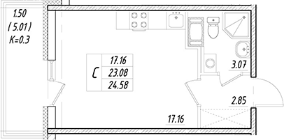 Общая площадь 24.5 м2