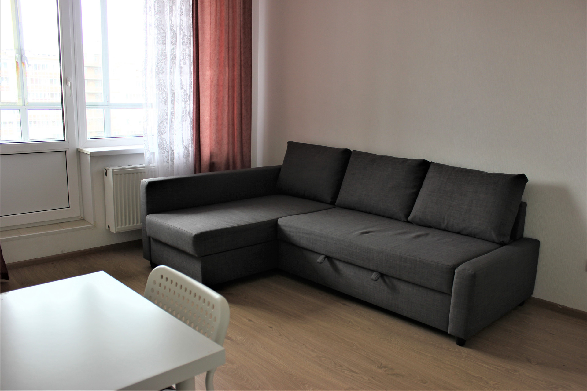 Выполнен ремонт от застройщика. Окна выходят во двор. В квартире остаётся вся мебель и техника, что есть на фото.