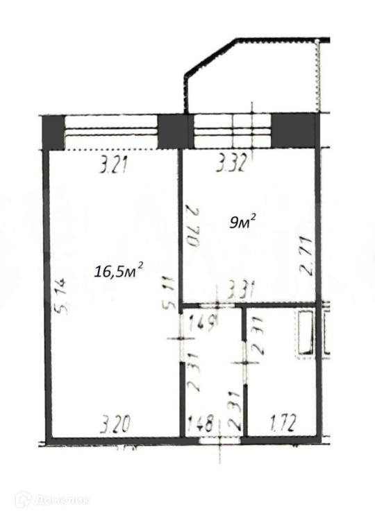 Жилая площадь 16.5 м2