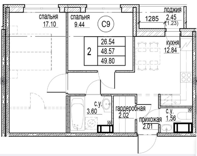 Общая площадь 49.8 м2