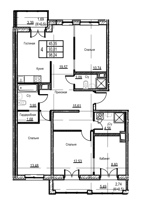 Общая площадь 98.24 м2