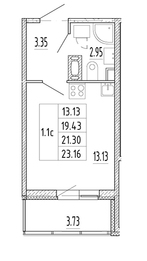 Общая площадь 23.16 м2