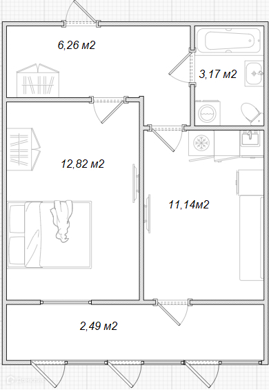 +площадь квартиры 33,4 м без учета балкона