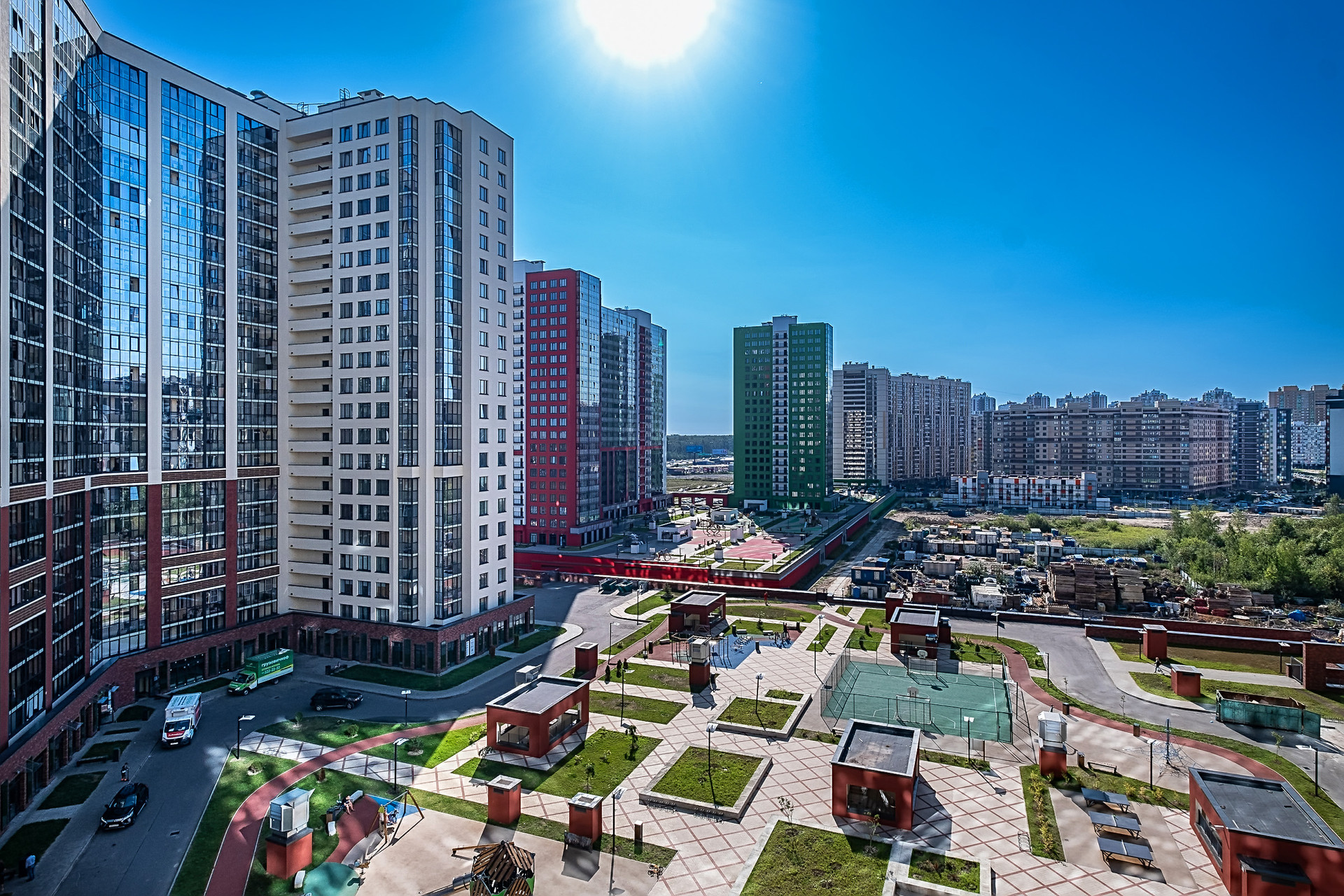 Окна выходят в тихий двор, с закрытой от машин придомовой территорией, на солнечную сторону. Также работает круглосуточное видеонаблюдение. Детский сад и школа располагаются во дворе. В 5 минутах пешком находится современный парк Оккервиль. Для автовладельцев квартира будет находиться в удобной транспортной доступности, ведь в 10 минутах есть съезд на КАД. Поблизости есть все для современной активной жизни. Фитнесклуб, детские сады, школы, поликлиника, гипермаркеты, торговоразвлекательные центры, рестораны, в том числе МЕГА Дыбенко, и многое другое. Авторская концепция благоустройства разделила зоны дворовой части по интересам каждого жителя. Спортивное оборудование для любителей спортивного образа жизни, горки и карусели для малышей, современные лавочки и качели для тех, кто хочет провести время с друзьям, почитать интересную книгу или просто выпить кофе из соседней кофейни.