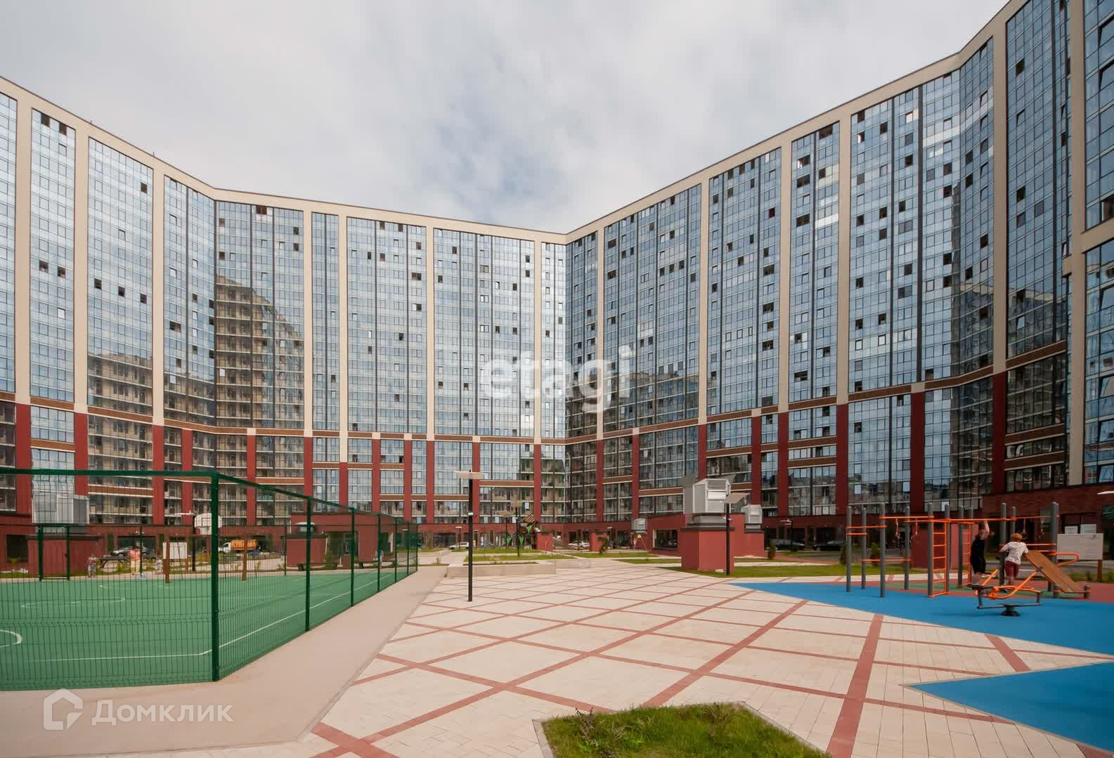 Дворовая зона комплекса разделена на части по интересам каждого жителя. Здесь есть спортивное оборудование, горки и карусели для малышей, современные лавочки и качели для тех, кто хочет провести время с друзьям, почитать интересную книгу или просто выпить кофе из соседней кофейни.