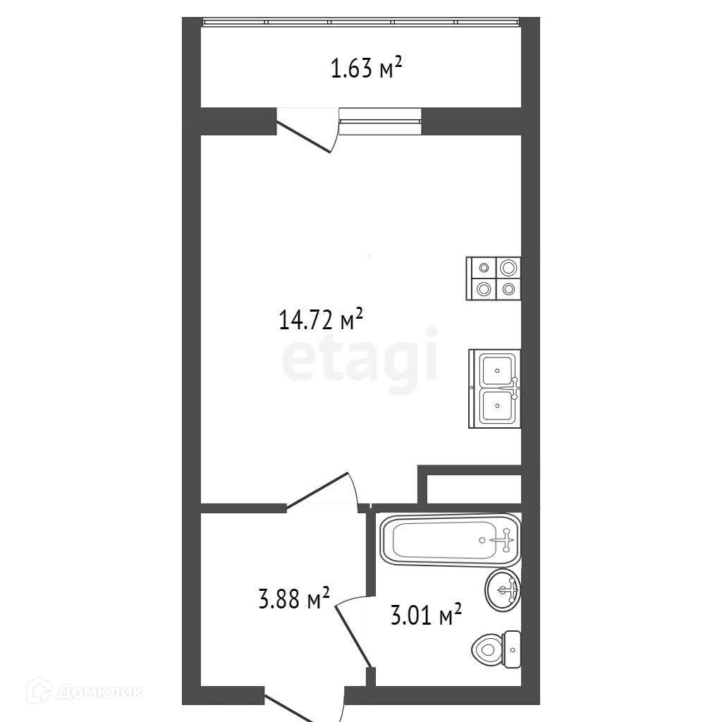 Общая площадь 22.1 м2