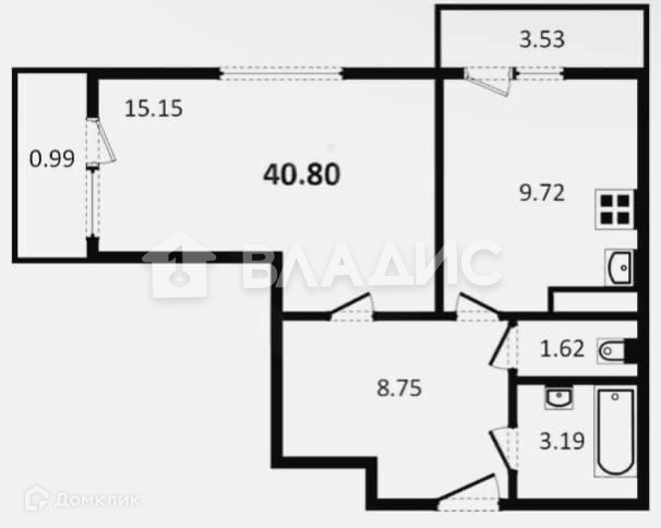 Общая площадь 40.8 м2