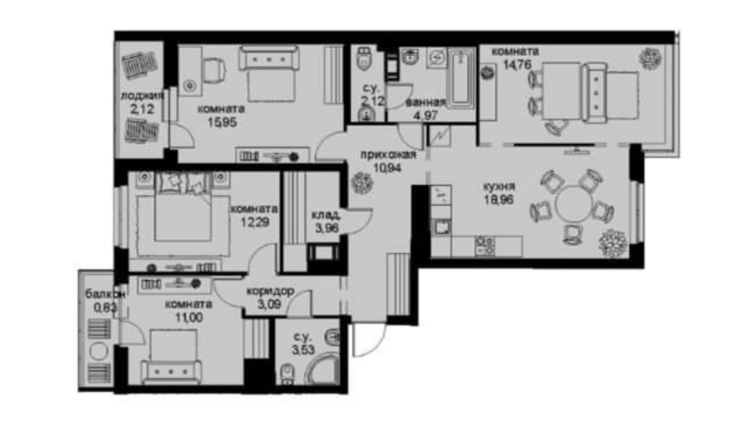 - Комнаты:15.95+12.29+11+14.36