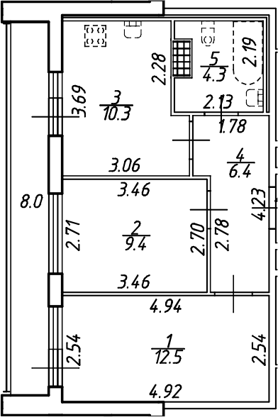 Общая площадь 45 м2