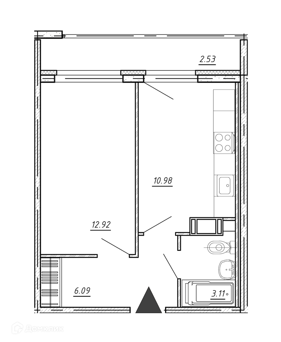 Жилая площадь 12.92 м2