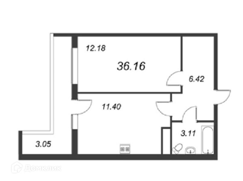 Жилая площадь 12.18 м2