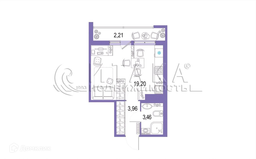 Общая площадь 26.62 м2