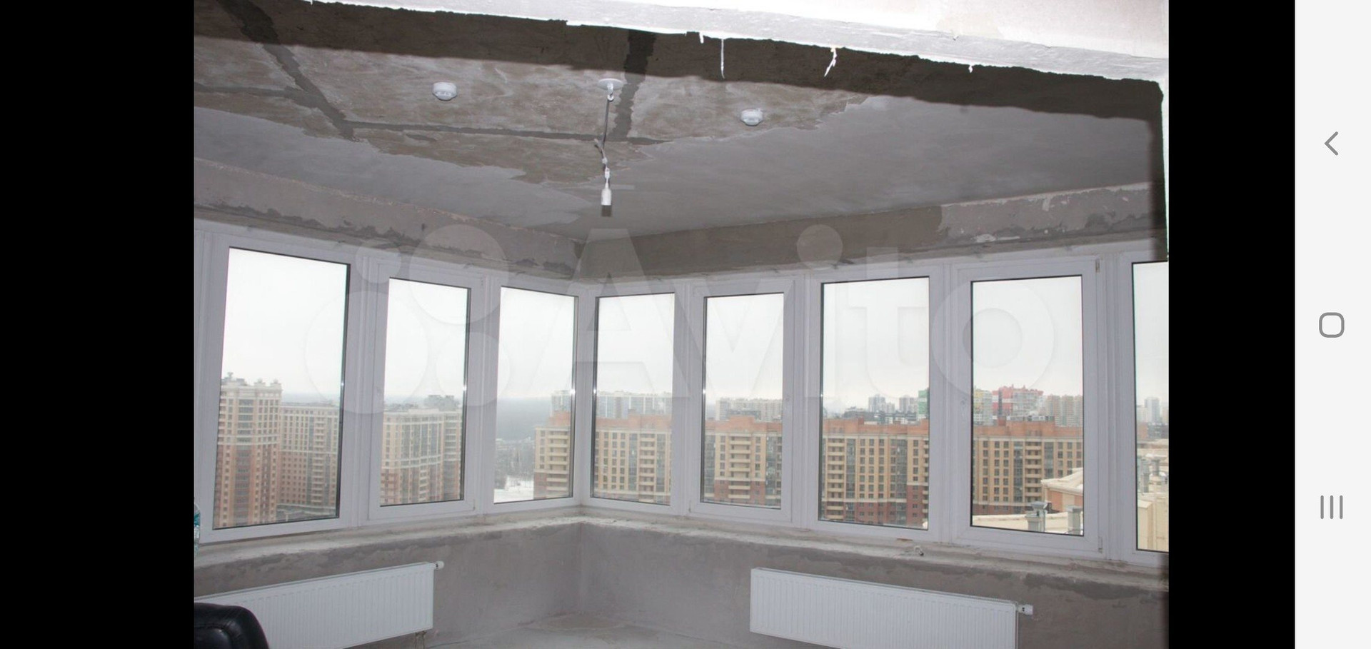 Видовая двух комнатная квартира с кухней-гостинной 23 м2. Две стены помещения из панорамных окон с двухкамерным остеклением (меньше теплопотери и лучше звукоизоляция). Потрясающий вид на весь город, окна на юго-восток.