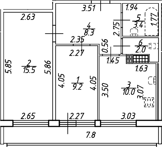 Балкон, лоджия 1 балкон