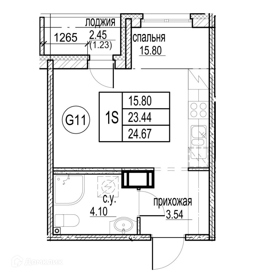 Общая площадь 24.67 м2