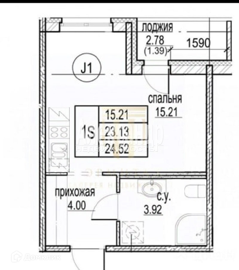 Общая площадь 23.2 м2