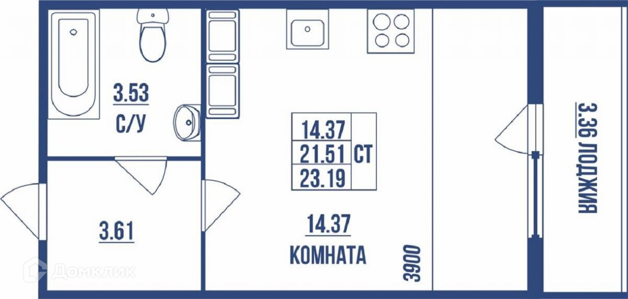 Общая площадь 23.19 м2