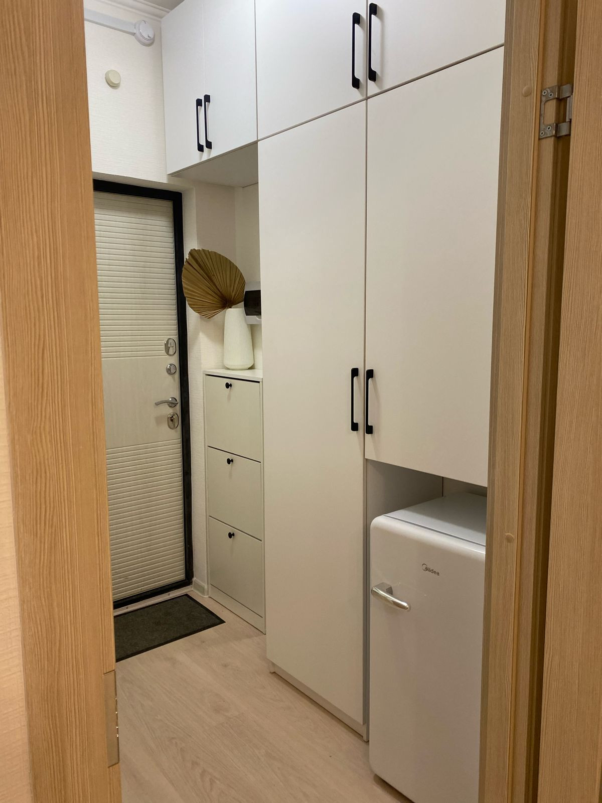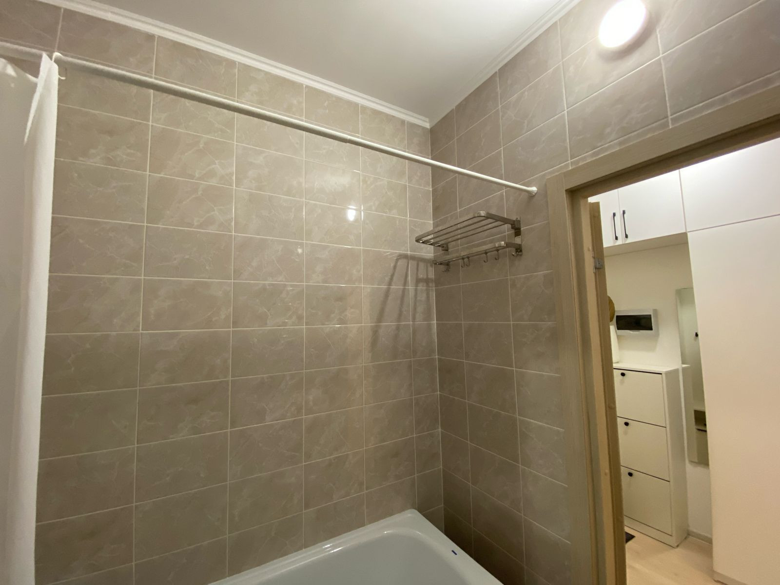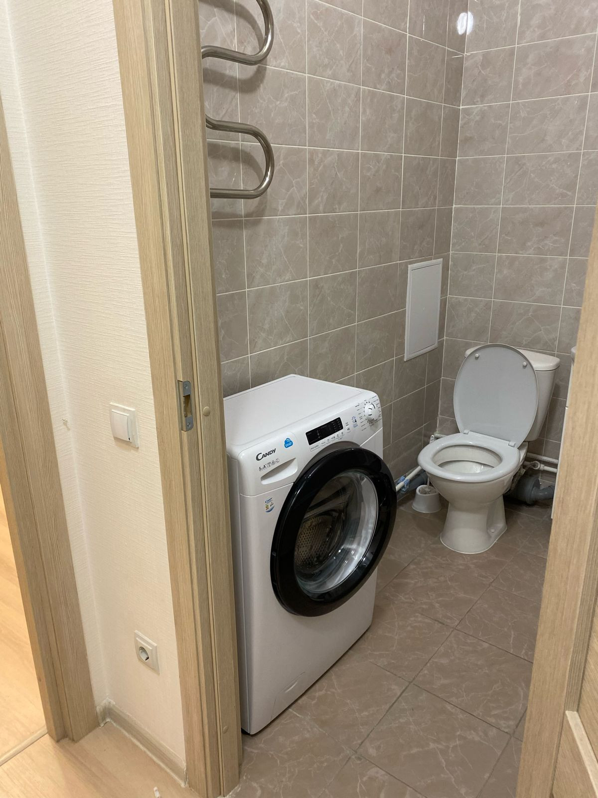Квартира с отделкой: ламинат, обои под покраску, плитка в санузле.