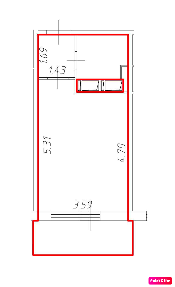 Общая площадь 23.7 м2
