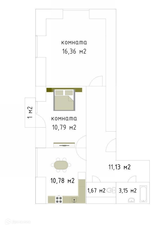 Жилая площадь 27.1 м2