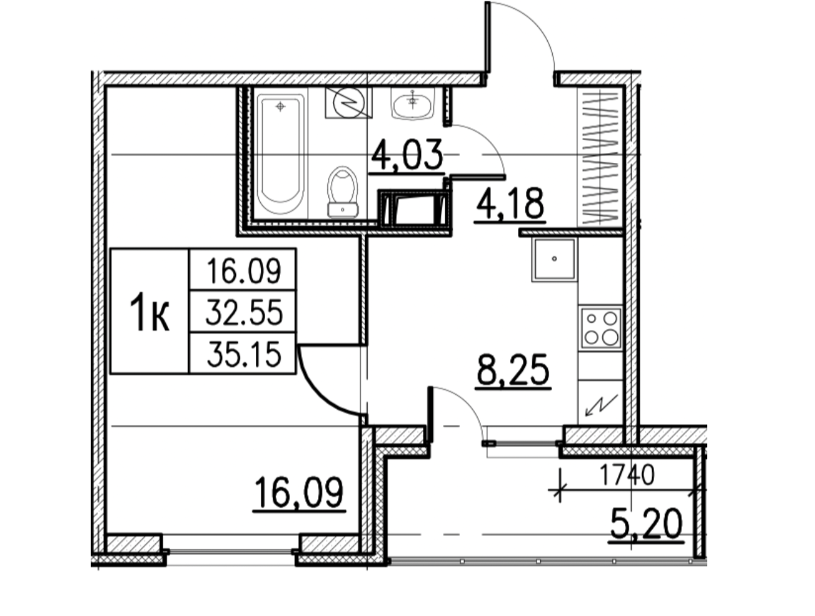 Общая площадь 35,15 кв.м.