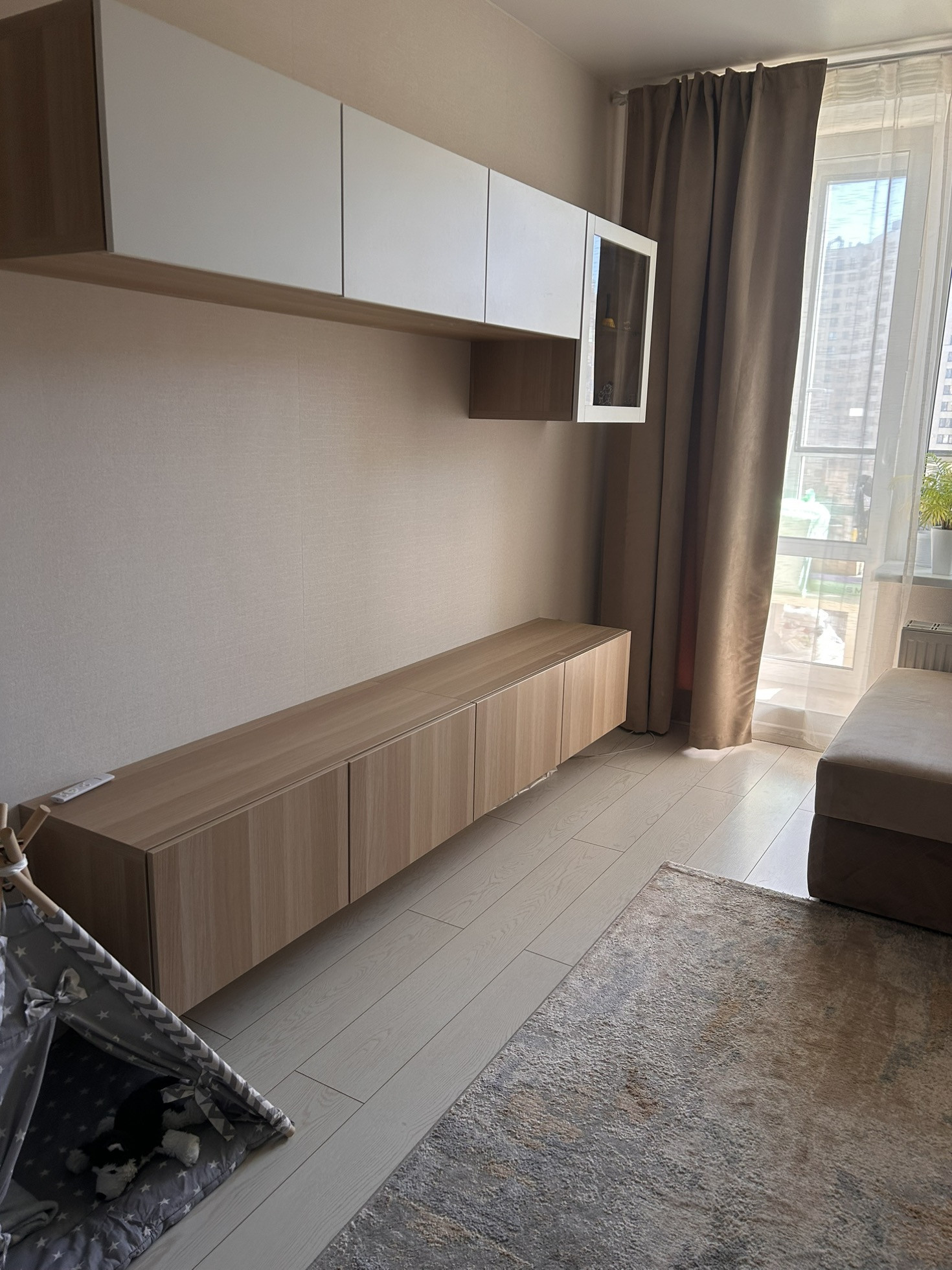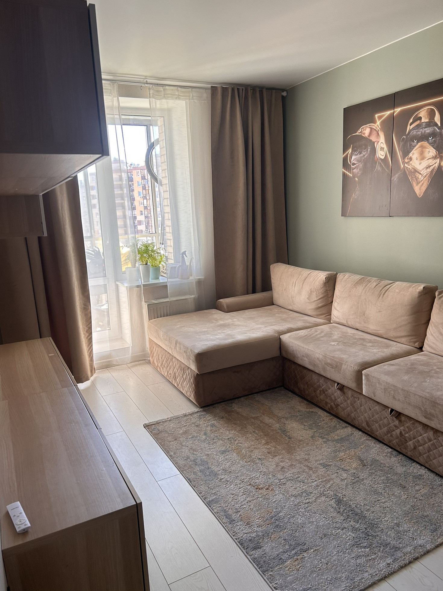 Квартира светлая, чистая. Встроенная мебель останется покупателю. Остальная мебель и техника по договоренности если нужно. В квартире установлен кондиционер, бойлер на 100 литров (остаются новым владельцам).