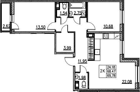 Общая площадь 68.47 м2