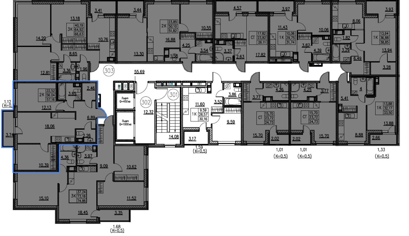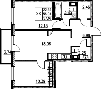 Общая площадь 56.04 м2