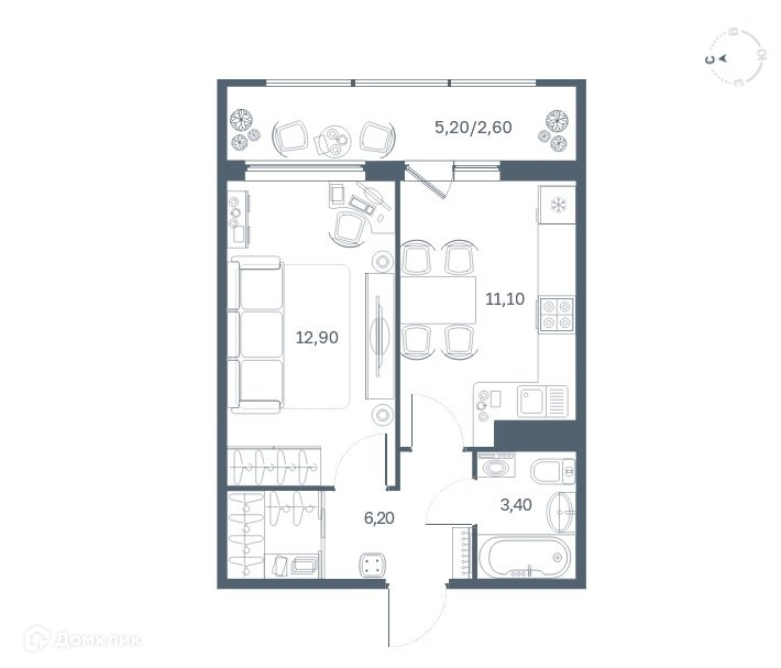 Жилая площадь 12.6 м2