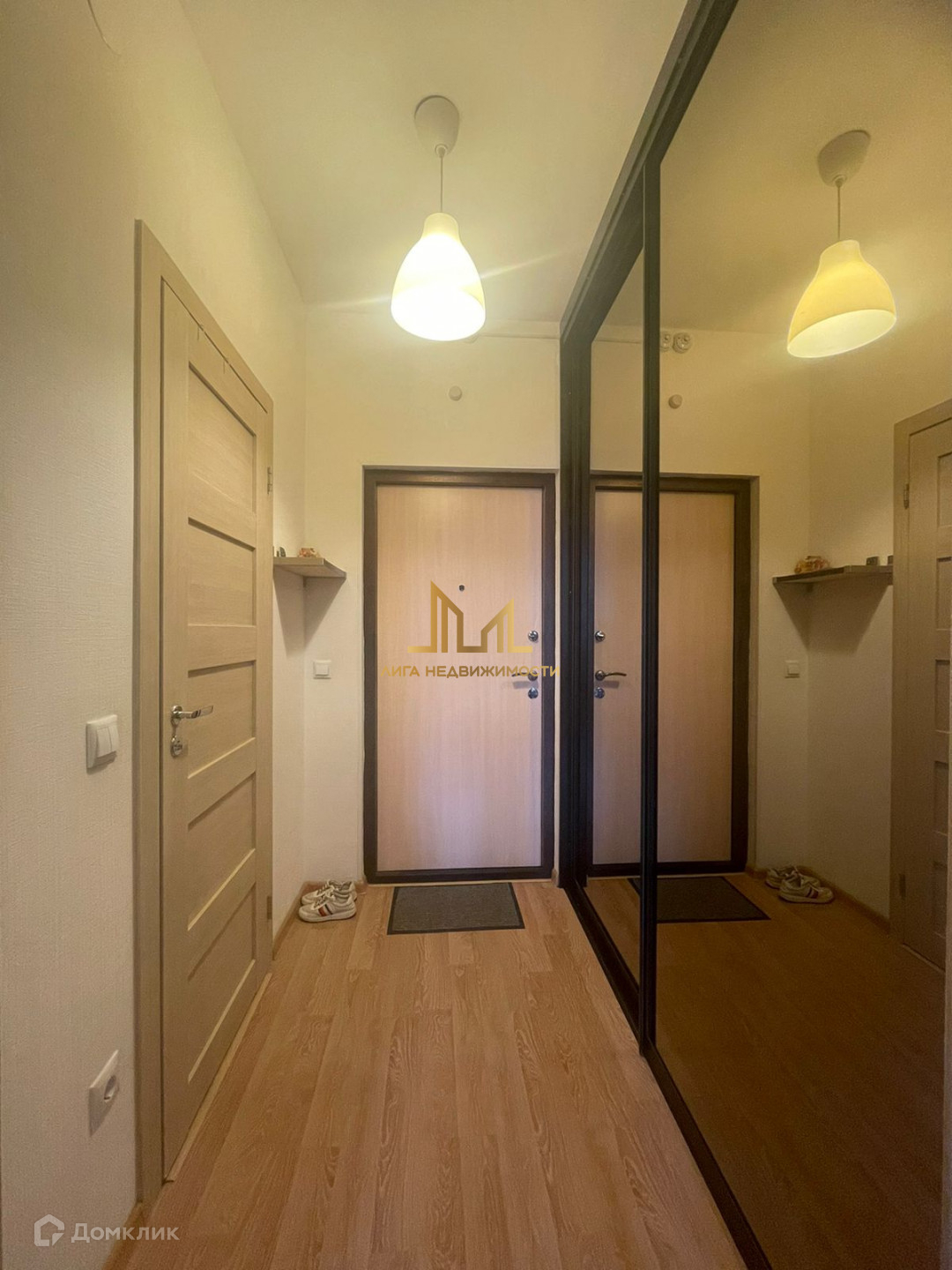+ В прихожей встроена просторная вместительная гардеробная с зеркалами, благодаря чему визуально облегчает пространство.