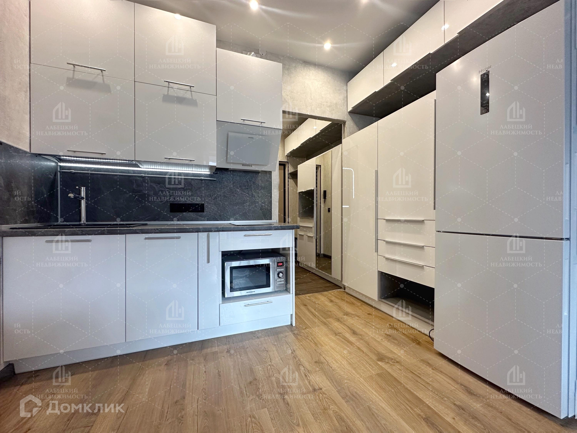 (индукционная панель, духовка с функцией микроволновой печи и гриля, посудомоечная машина с сушкой, вытяжка из стекла, холодильник haier с инверторным двигателем, инверторная стиральная машина LG, огромное светодиодное сенсорное зеркало, поворотное зеркало из нержавеющей стали).