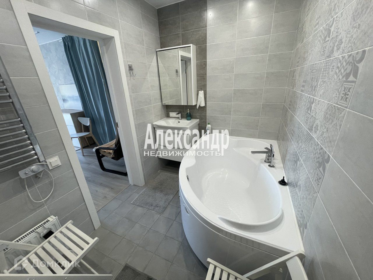 У квартиры очень удачная планировка. Просторная прихожая - 6 м2. Кухня-гостиная - 24 м2. Детская - 12 м2 и спальня 18 м2. Из спальни вход в собственный сан узел, размером почти 6 м2, с большой угловой ванной и туалетом. Вход во второй сан  узел, размером 5 м2, с душевой и туалетом, из прихожей. В каждой комнате и кухне окна в уровень пола (французские балконы), что позволяет проникать в квартиру огромному количеству света, и делает ее визуально еще более просторной. Так же в квартире есть простой застекленный балкон.