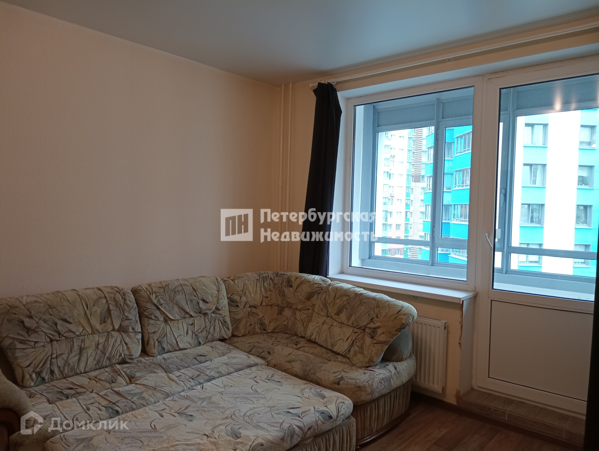 Комната квадратная, лоджия застекленная, вид из окна отличный. В санузле установлена полноценная ванная. Остается кухонный гарнитур, большой диван и в прихожей - вместительный шкаф.