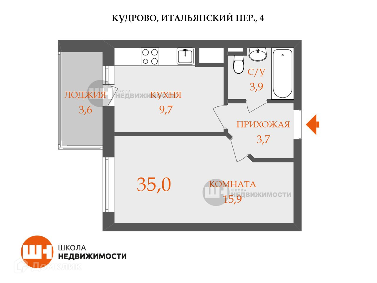 - Комната – 15,9 м²