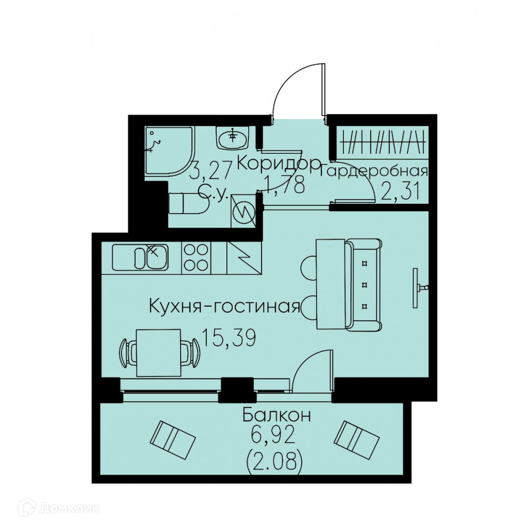Жилая площадь 15.39 м2