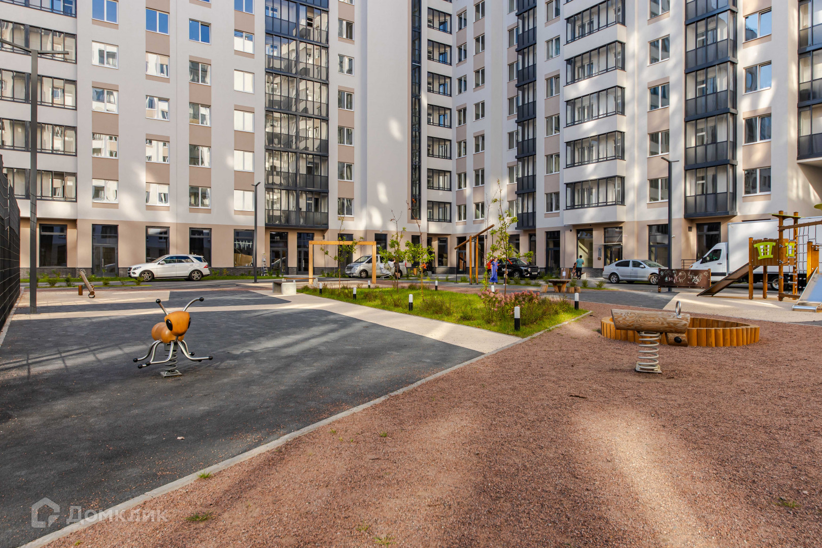 Территория ЖК закрытая, с большой детской площадкой, оборудованы зоны отдыха для взрослых. В составе ЖК свой детский сад, заканчивается строительство школы.  Есть подземный паркинг и гостевая стоянка.