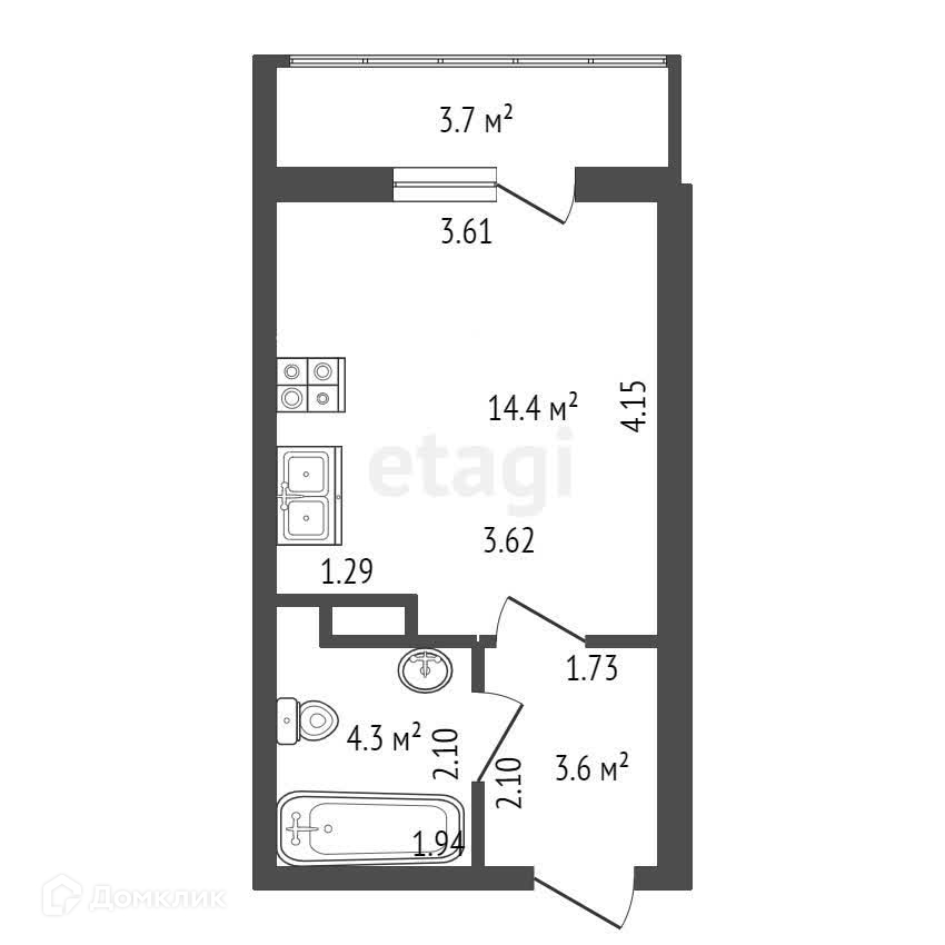 Балкон, лоджия 1 балкон