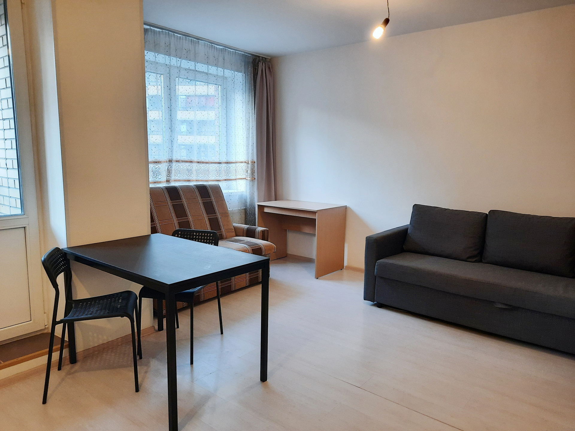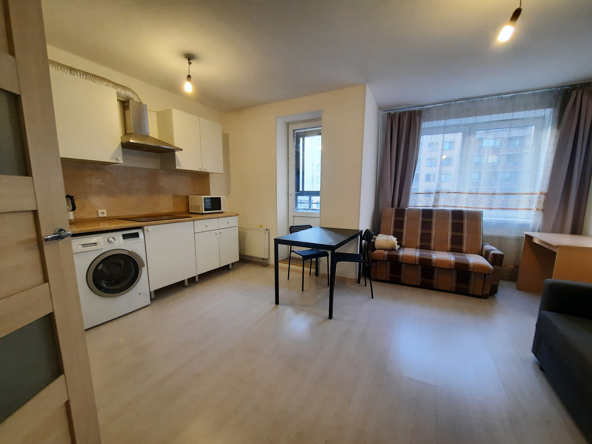 Уютная, а благодаря двум окнам, очень светлая квартира имеет удобную планировку для функционального зонирования: просторную комнату 19,77кв.м., объединенную с кухонной зоной, совмещенный санузел, удобную прихожую с нишей в которой размещен большой встроенный шкаф-купе (можно оборудовать гардеробную). Квартира имеет два окна, которые выходят на юг в зеленый двор, благодаря чему будет всегда светло и уютно, а так же нет пыли и шума. Квартира с полной качественной отделкой, что избавит вас от хлопот и дополнительных затрат: стены оштукатурены, выровнены, оклеены обоями под покраску, на полу ламинат 32 кл., в санузле керамическая плитка, установлена сантехника, качественные межкомнатные и входная двери, лоджия остеклена.