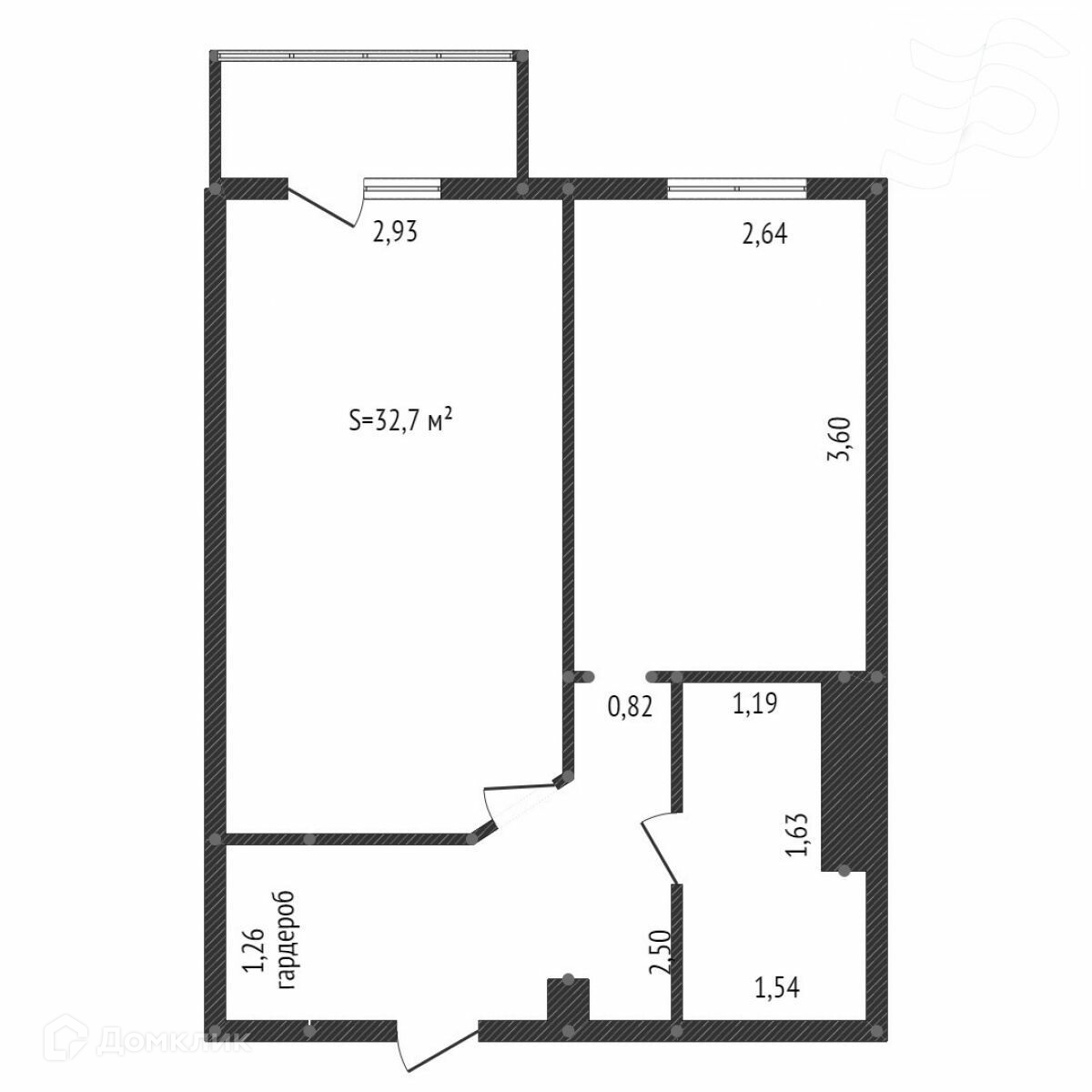Общая площадь 32.7 м2